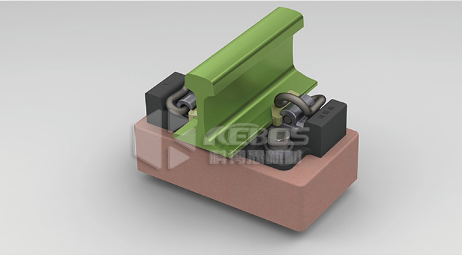 壓縮硫化型減振扣件主要由粘接墊板、調距齒塊、錨固螺栓等零部件組成,與普通彈性分開式扣件相 比,減振效果可達(5~8) dB。該扣件系統結構緊湊、重量輕、零部件少、安裝維修方便,可用于城市 軌道交通新線鋪設或既有線改造,也適用于高架線小阻力路段,具有廣泛適應性。